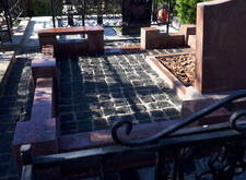 Облицевали бетон полированным гранитом, на территорию участка уложили брусчатку, предварительно приподняв памятник.